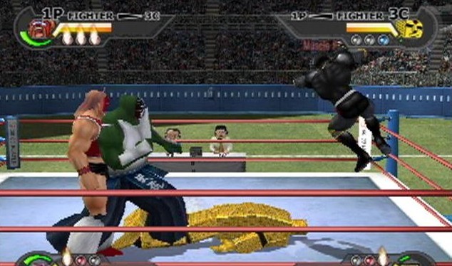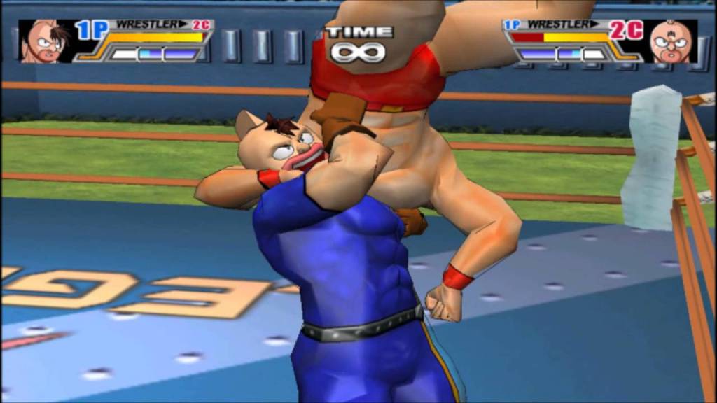 Finishing moves, the big attraction of nearly any wrestling game, and the momentum of your wrestler in general, were tied to a spirit meter that fluctuated depending on how well you were doing in the match. The spirit meter largely replaced the usual health bar seen in such games, with the only other way to gauge your character’s health being represented by whether or not they were visibly favouring a part of their body. (which was another brilliant touch, I might add) The meter was represented by a beating bar that either shrank or grew, and changed colours from cold blues to hot reds to match. At its peak, the bar would read “Special” which meant that you had about fifteen seconds or so to hit as many finishing moves as you could. It was yet another innovation in the genre that just brought the whole package together.