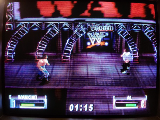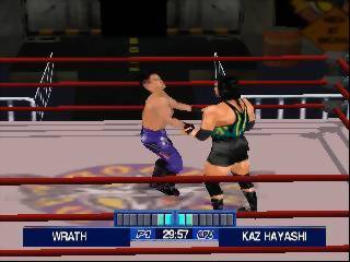 You know what? If they had more time, I believe Kodiak might have been able to at least do that much. WCW Mayhem, though, had only about a year of development before it was released for both the Nintendo 64 and the PlayStation in September of ’99.