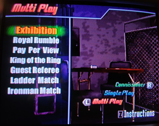 The last point I want to add is that this game had a complete feel to it. Back in ’97, you had one shot to get the game right before it was released. There were no patches to fix bugs or glitches that the players might find. Once it was on the market, that was it. (with one exception that I’ll get into later) Some games, especially in this early 3D era, and particularly amongst the saturated racing and sports game genres, could feel wonky and buggy. I had rented/borrowed a few games that felt this way, and it was not often that a game made by anyone other than Rare or Nintendo themselves could truly nail it for the N64. Well, the AKI Corporation did in fact nail it. It had mass appeal, too, even amongst casual and non-wrestling fans, as the game had nuance for wrestling, but was still easy to pick up and play for everyone else. To that end, with its four player battle royals, it was the fighting game choice for parties. Before Super Smash Bros. came along, this was the way to go if you wanted a game where you and a bunch of your buddies could beat the tar out of one another. At least it was for my crew. Countless weekends were spent sleeping over at one another’s houses with this game in an N64 that had controller cords going in every direction.