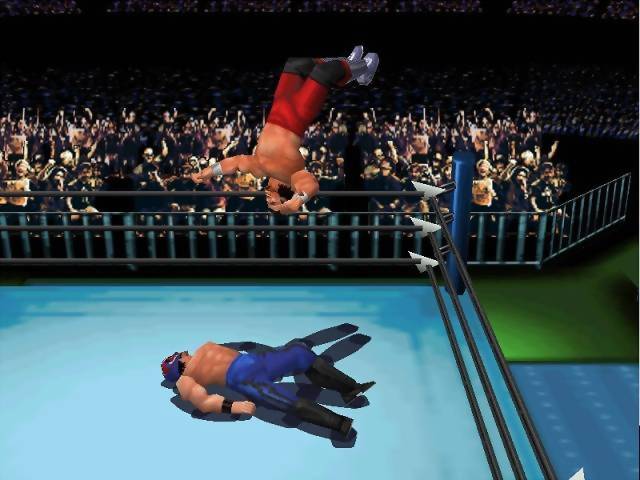 To start, there was a major graphical overhaul of everything. The polygonal appearance of the wrestlers was greatly smoothened out for more realistic proportions, the facial features were more prominent and didn’t look entirely flat anymore, and details like tattoos and ring gear were sharpened considerably. The arena itself got an upgrade, and it never looked more like the real thing. For example, turnbuckle pads actually looked like turnbuckle pads and not just triangular shapes. The ring steps became not just a part of the scenery, but were now a usable asset to either climb or use as a weapon. Even the announcer’s table was here, complete with ability to be destroyed by slamming your opponent through it.
