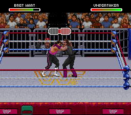Gameplay wise, it was perfect. Everything just controlled so crisply, there was no lag, and no hit detection issues; everything just worked. They employed a new system for grappling that added more variety than ever seen in a North American release of a wrestling game. When close to an opponent, a tap of the A button launched a grapple attempt. If successful, you could then press A or B along with any direction of the D-pad (or just the A or B button alone) and perform a move. Nearly every direction and the static options was its own move (The only holdout was that both the left and right directions were mapped to the same move). To that point, I was accustomed to stuff like Royal Rumble, where you had a total of six moves and one of those was to throw your opponent towards the ropes. Not only did you have all those options at your disposal, but if you held the A button a little longer before grappling, you could attempt a stronger grapple. While easier to reverse, this new assortment of moves did more damage, so it was an even trade-off. The point though, was that just with a standard, standing grapple position you had sixteen possible moves at your disposal. If you grabbed the opponent in a rear waistlock, you got about eight new move options again. Admittedly, the rear waistlock option had far less variety than a front grapple, but the amount of options was staggering for a wrestling fan having freshly arrived from the 16-bit era.